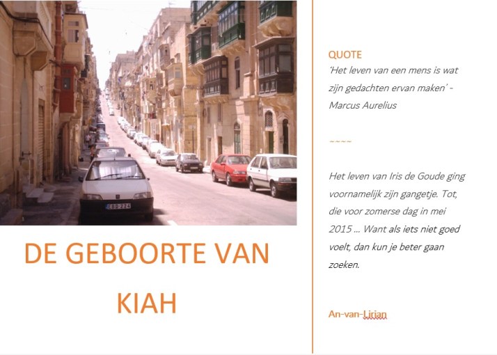 Iris de Goude is een vrouw die midden in het leven staat. Ze heeft een goede baan bij de gemeente en een kleine maar hechte vriendenkring. Haar leven gaat voornamelijk ‘zijn gangetje’. Tot die voorzomerse dag in mei 2015, toen ze met elke vezel in haar lichaam voelde dat er iets moest veranderen. Hoe dit verhaal zich verder ontwikkelt en welk pad Iris in gaat slaan dat lees je later in: De geboorte van Kiah.